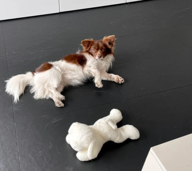 猫咪散落的毛发在深色地板上格外显眼,就像撒了一地的棉絮。