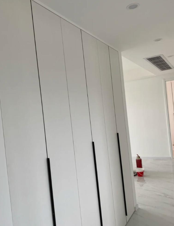 整体衣柜安装时看起来笔直挺拔,用了没多久柜门就开始变形下垂,关门时要用力向上抬才能对准门框。